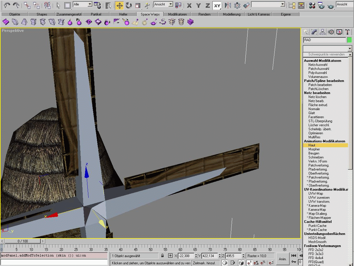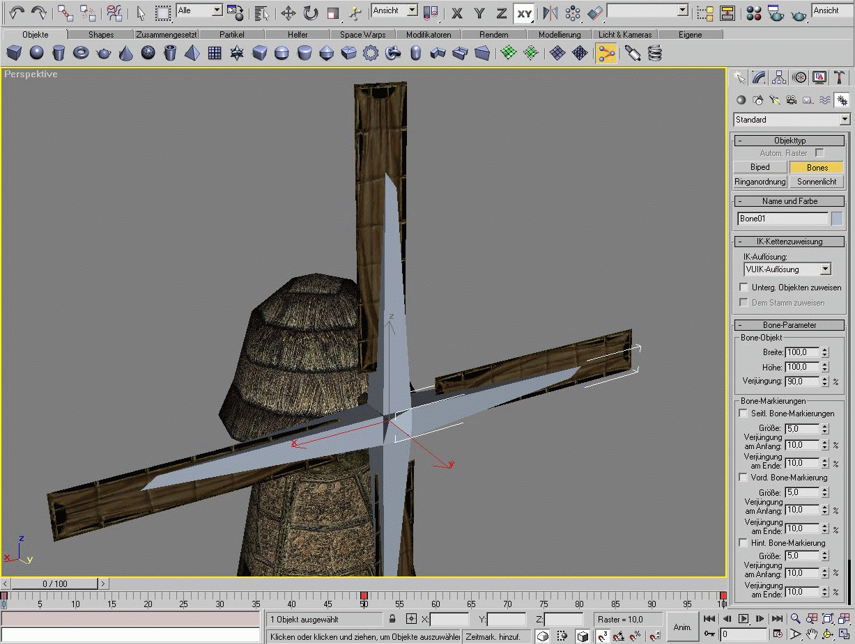 Da ich zu ersteren die Datei mitliefere schenk ich mir die Erklärung wie man ein Mesh (hier das Windrad) baut.